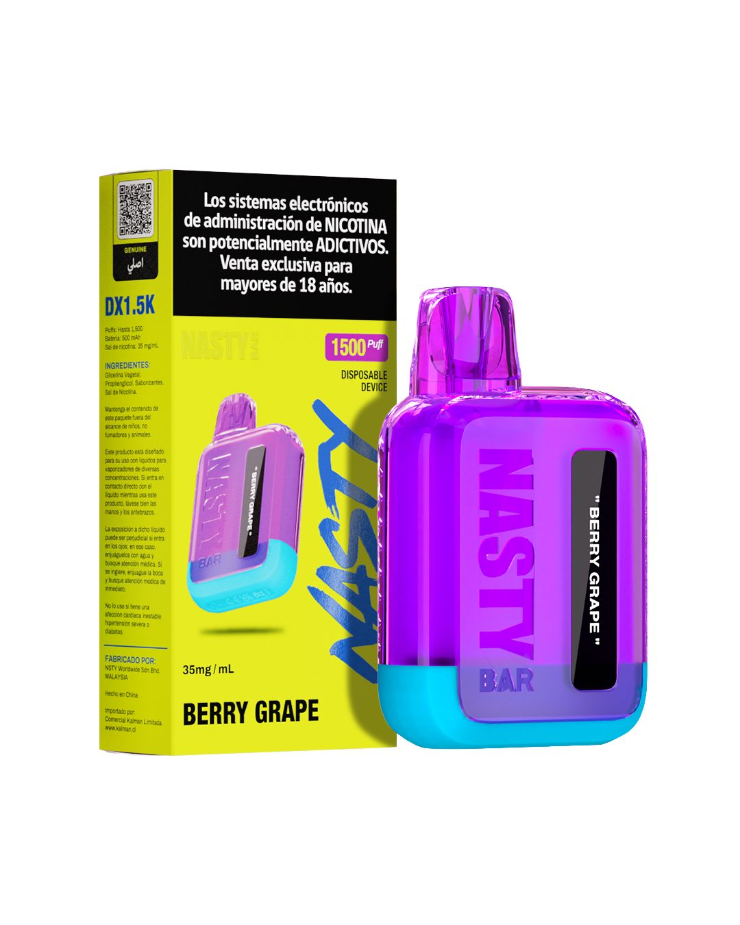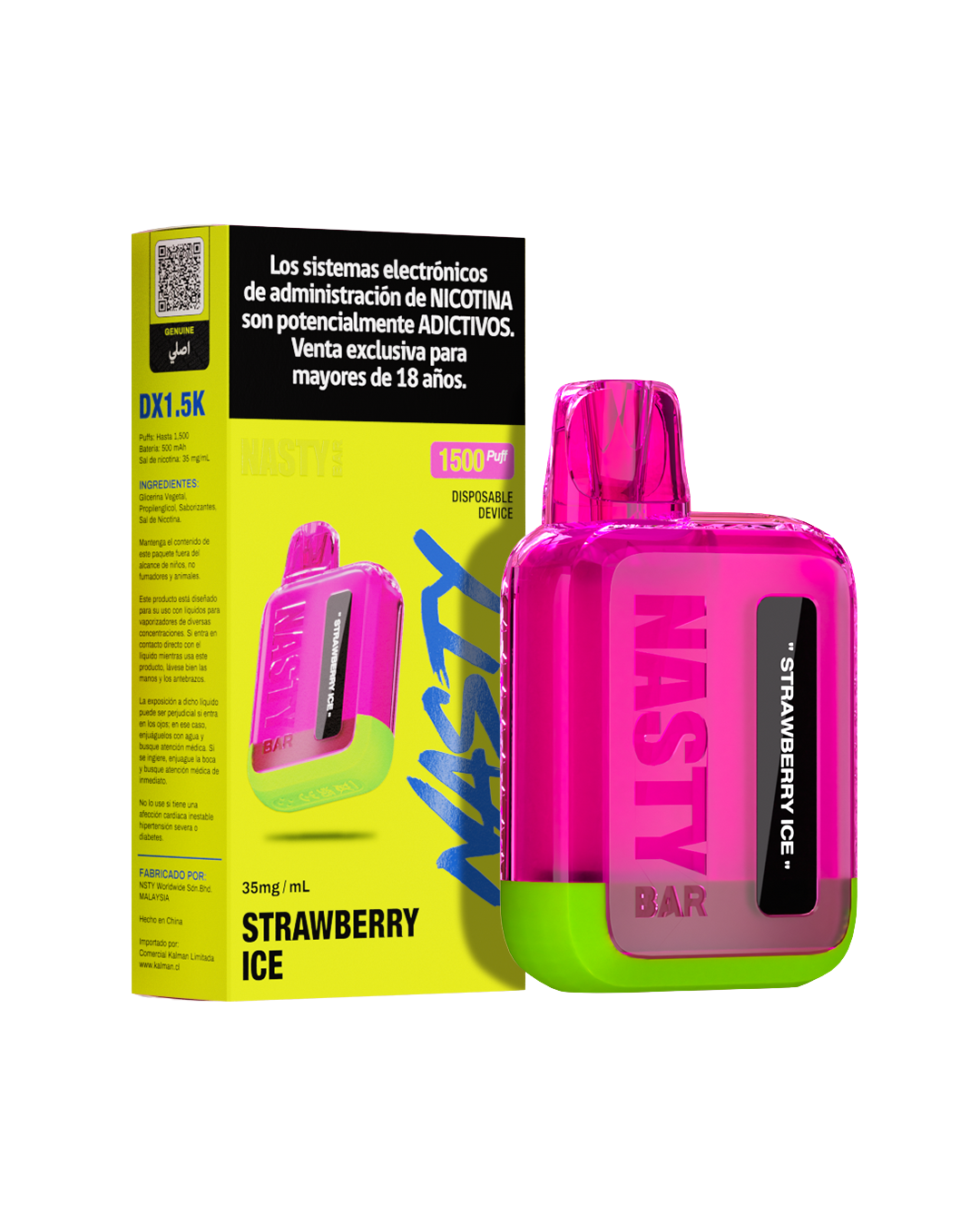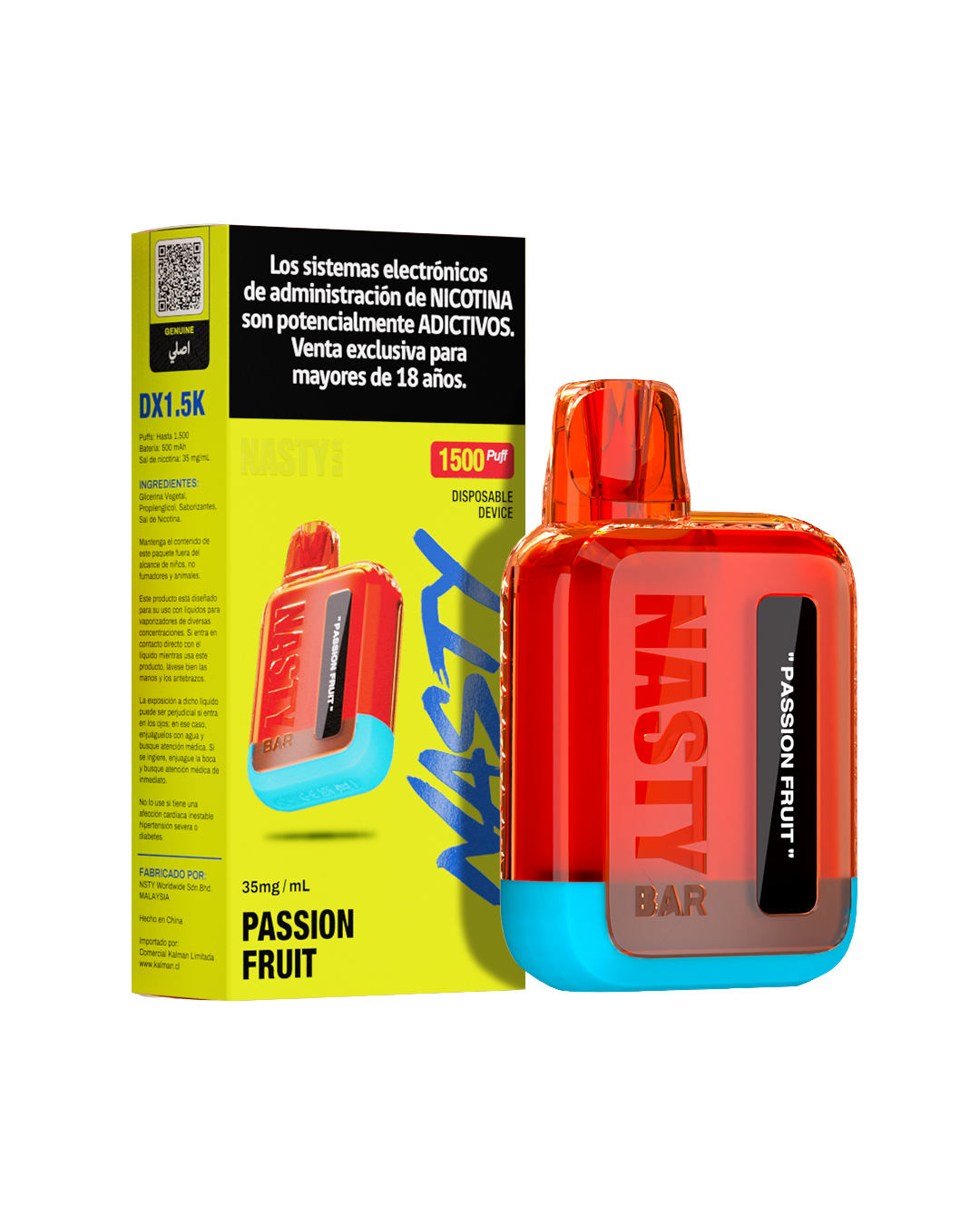 El nuevo NASTY 1.5K es un dispositivo desechable de sales de nicotina, ultra compacto y no recargable, que ofrece hasta 1.500 puffsde pura satisfacción de sabor. Sin carga, sin botones: solo un dispositivo simple y fácil de usar, listo para disfrutar directamente desde la caja. La forma más sencilla de saborear los sabores más ricos del mundo.